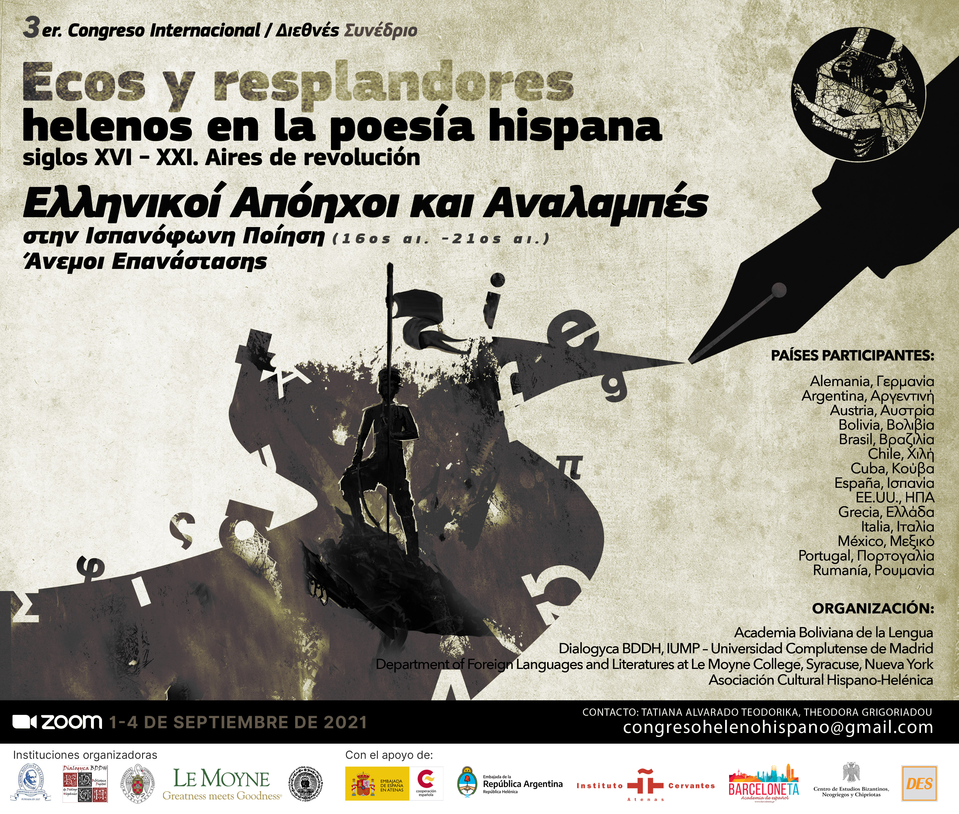 del Le Moyne College de Nueva York y la Asociación Cultural Hispano-Helénica, el Congreso Internacional Ecos y Resplandores Helenos en la Literatura Hispana. Siglos XVI-XXI. que en su tercera edición estará dedicado a la poesía, con «Aires de Revolución».