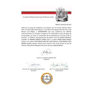 La Academia Hispanoamericana de Buenas Letras de Madrid concedió el Premio Dámaso Alonso 2025 al poeta, escritor y ensayista Juan Ignacio Siles del Valle, Miembro de Número de la Academia Boliviana de la Lengua.